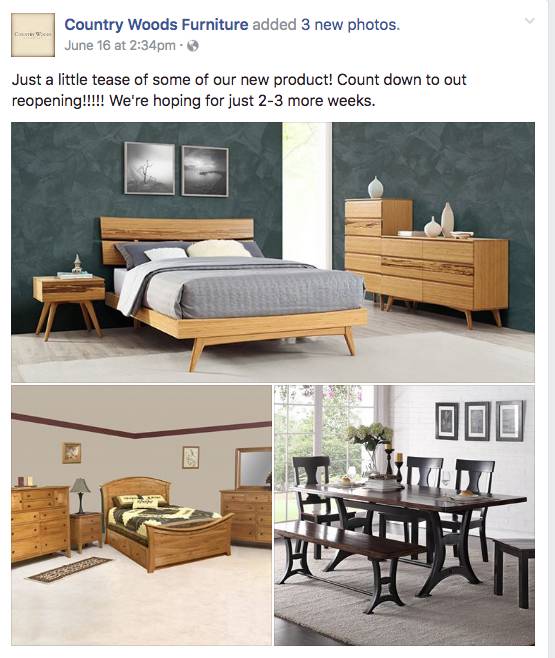 He said future customers can follow Country Woods Furniture on Facebook or sign up on the company website (countrywoodsnh.com), to be notified when the new location is open for business.