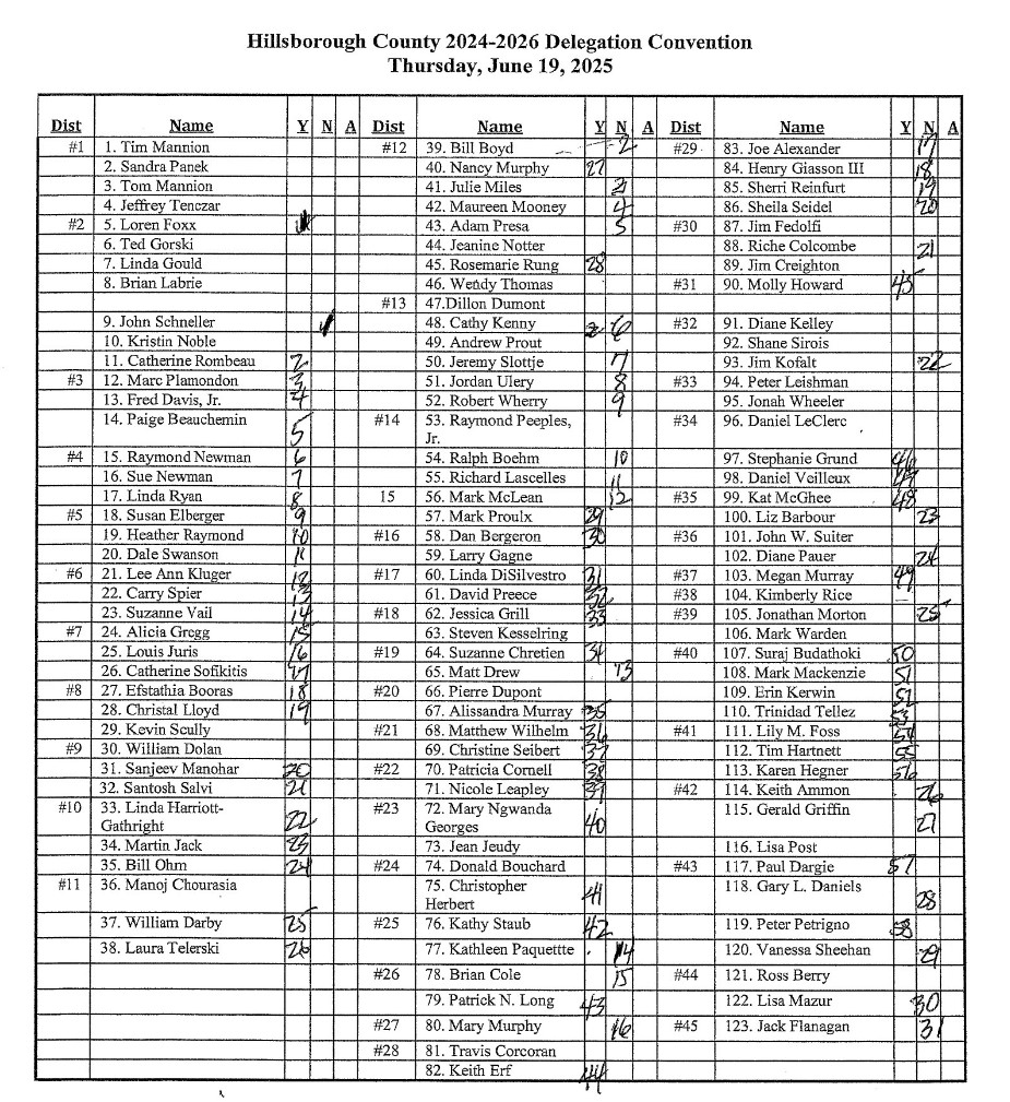 GOFFSTOWN, N.H. โ After four hours of deliberation, the Hillsborough County Delegation Convention approved a $148,319,029 budget for Fiscal Year 2026. That amount included $1,624,206 for covering the cost of three new collective bargaining agreements with county employees and did not include a $734,781 amount for a potential contract between the county and U.S. Immigrations and Customs Enforcement, better known as ICE.