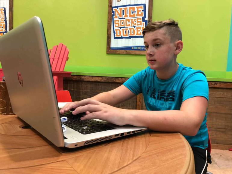 Jack Pearson tests out the new Learning Lab at Cowabunga’s. His parents, Matt and Kelly Pearson, are pivoting temporarily to a childcare model in time for back-to-school. Courtesy Photo