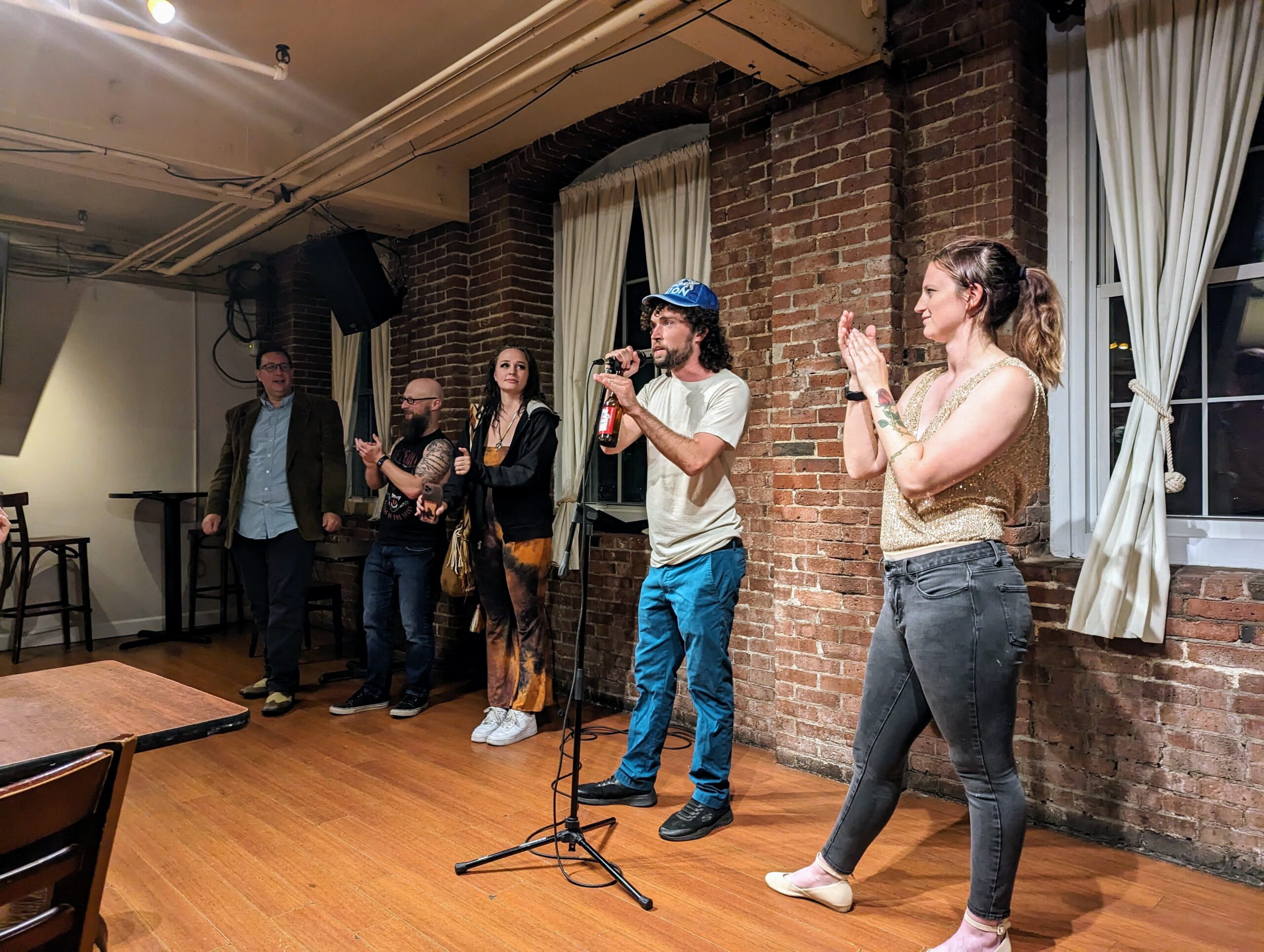 The variety slam was judged by Alexander Ragsdale, a poet from New Jersey; Shawn Caliber, a musician and performer from New York City, who also hosts Rap Night at The Shaskeen; poet Morgan Parrish; comedian Joe Nami; and Manchester Ink Link publisher Carol Robidoux.ย