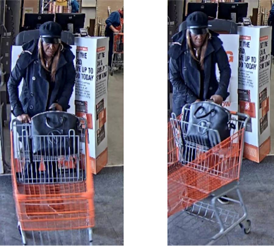 Police believe the woman pictured here stole the credit card and then made the purchases at Home Depot.