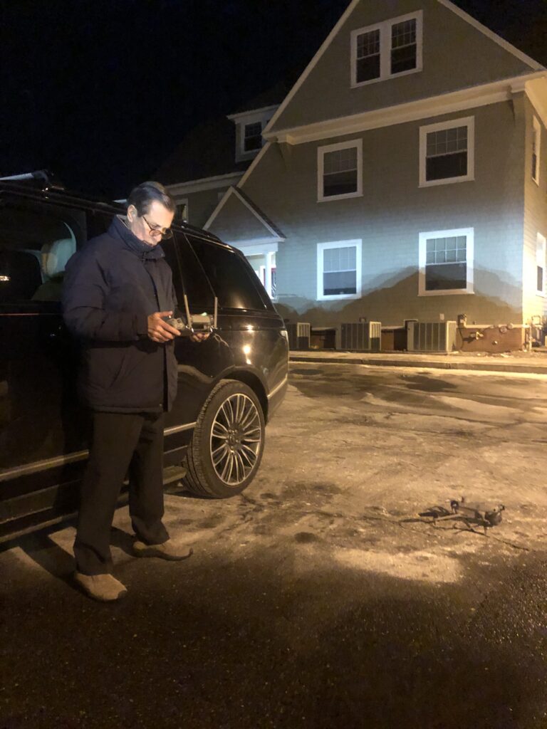 MANCHESTER, NH – On a recent Wednesday evening on Manchester’s West Side, Craig Gibson stood in a parking lot preparing to launch a thermal-imaging drone. It wasn’t to track down a missing child or lost pet — the plan was to count the thousands of crows that use the area as a night roost.
