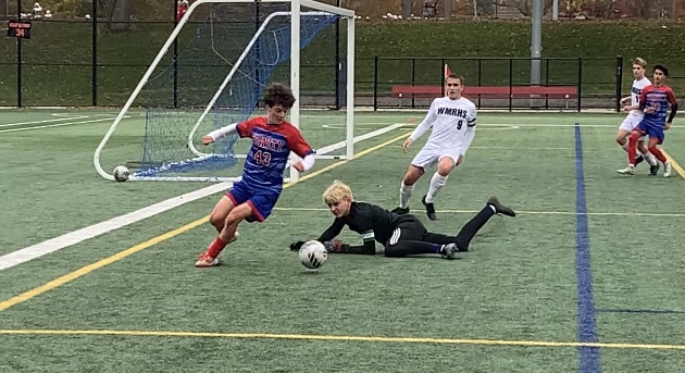 White Mountains was able to retake the lead just minutes later, when senior George Welch chased down a long lead pass, beating Charette (4 saves) to the ball and knocking it over his head and into the net.