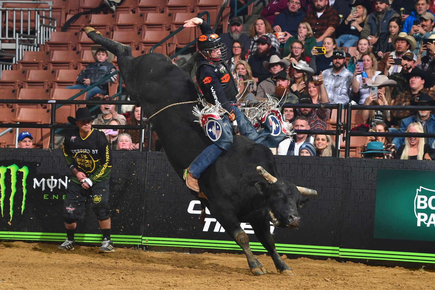 MANCHESTER, NH – In front of a raucous, sold-out crowd Saturday night at thr SNHU Arena, Andrew Alvidrez (Seminole, Texas) and Eduardo Aparecido (Gouvelandia, Brazil) rode supreme, tying for the Round 1 win at the PBR (Professional Bull Riders) Unleash The Beast’s Manchester Invitational.