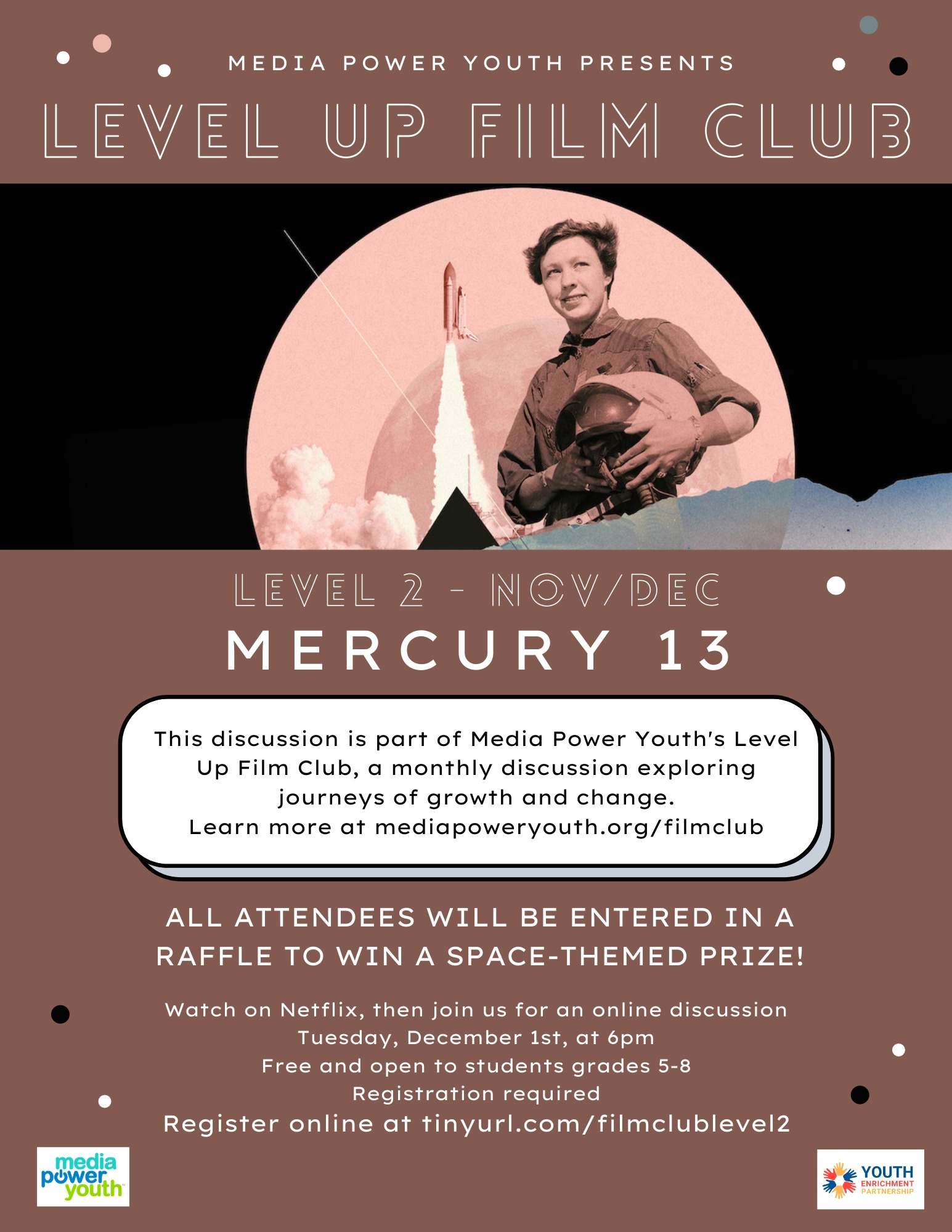Do you know students interested in movies, STEM, or outer space? Media Power Youth is hosting a monthly film discussion on stories of growth, change, and resilience. This month’s movie is Mercury 13, a documentary that tells the story of women who were tested in 1961 for spaceflight. Students can watch the film streaming on Netflix prior to the discussion.