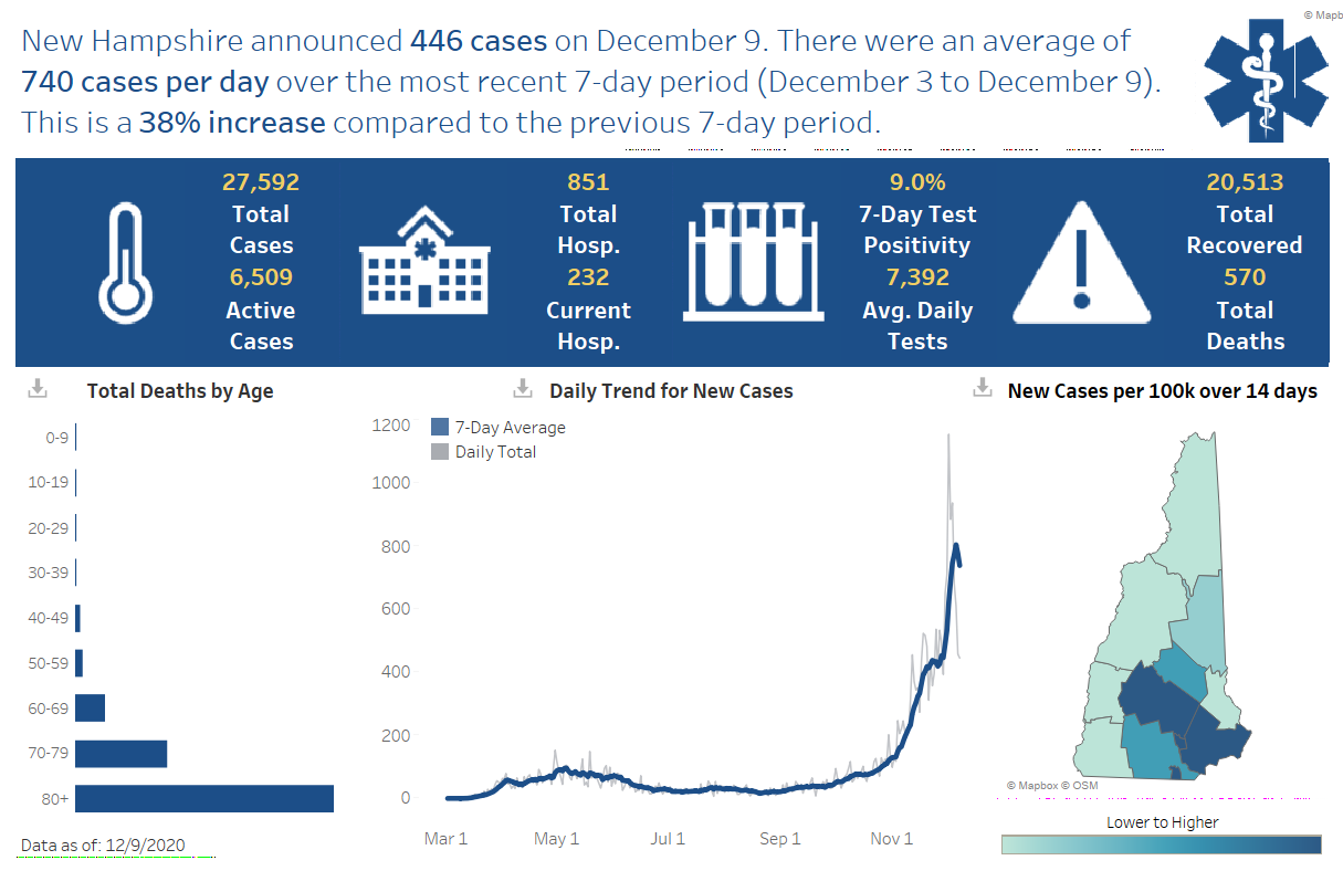 ย New Hampshire 2019 Novel Coronavirus (COVID-19) Summary Report (data updated December 10, 2020, 9 a.m.)