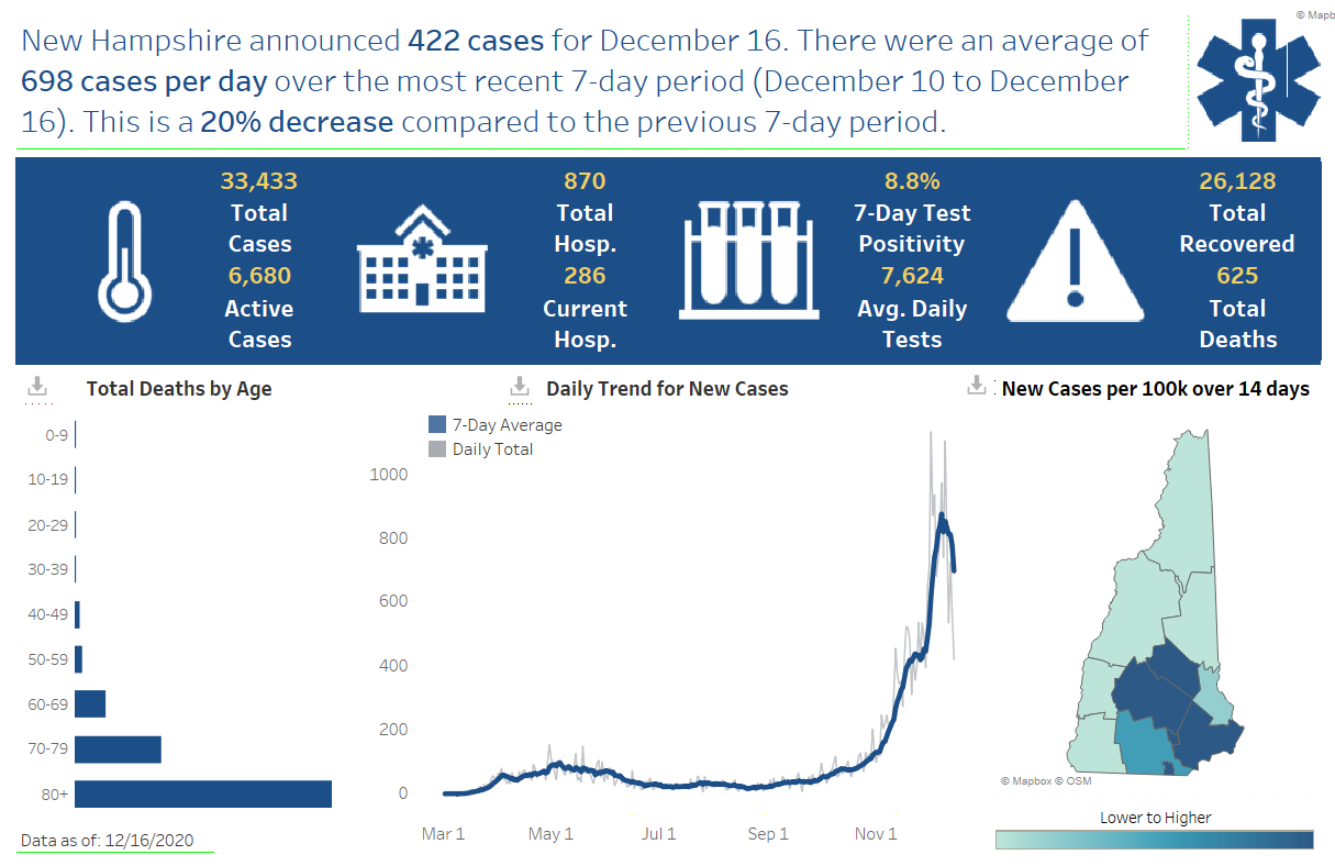 ย New Hampshire 2019 Novel Coronavirus (COVID-19) Summary Report (updated December 16, 2020, 9 a.m.)