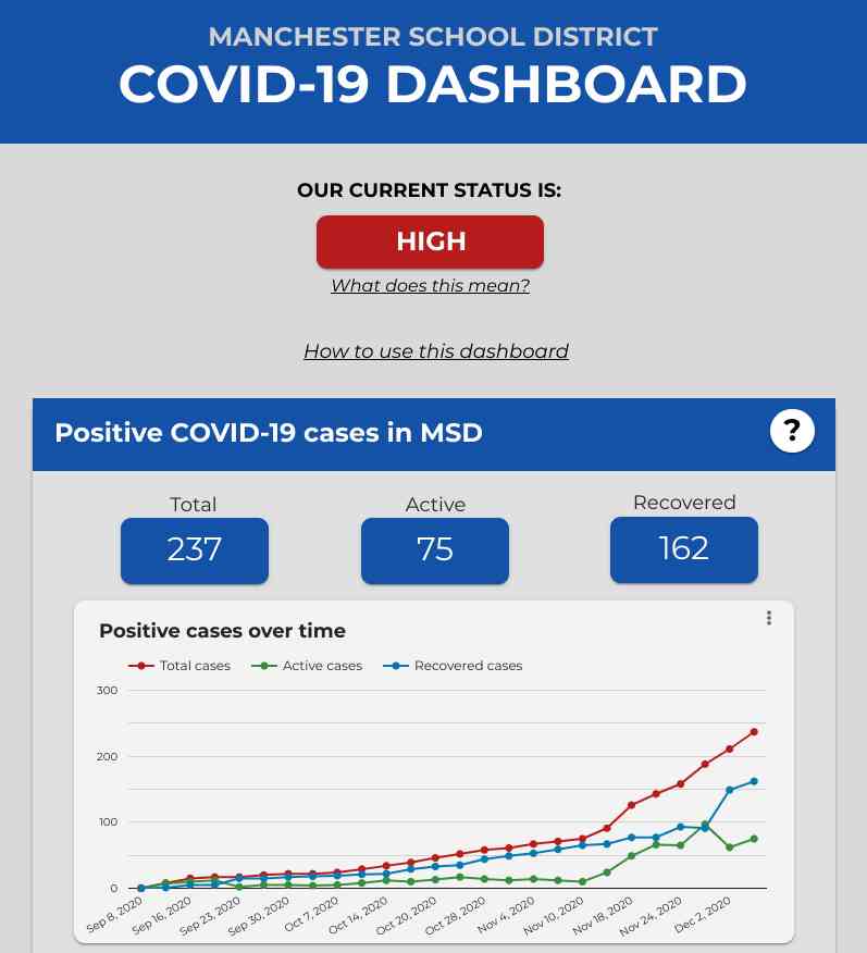 MANCHESTER, NH – The Manchester Health Department has identified COVID-19 clusters at two more Manchester School District schools. A cluster is defined as three or more cases in the same classroom or group during the same 14-day timeframe. The two new clusters were identified at the Middle School at Parkside and Webster Elementary School. Clusters were previously identified at Parker Varney Elementary School, Central High School and Manchester School of Technology.