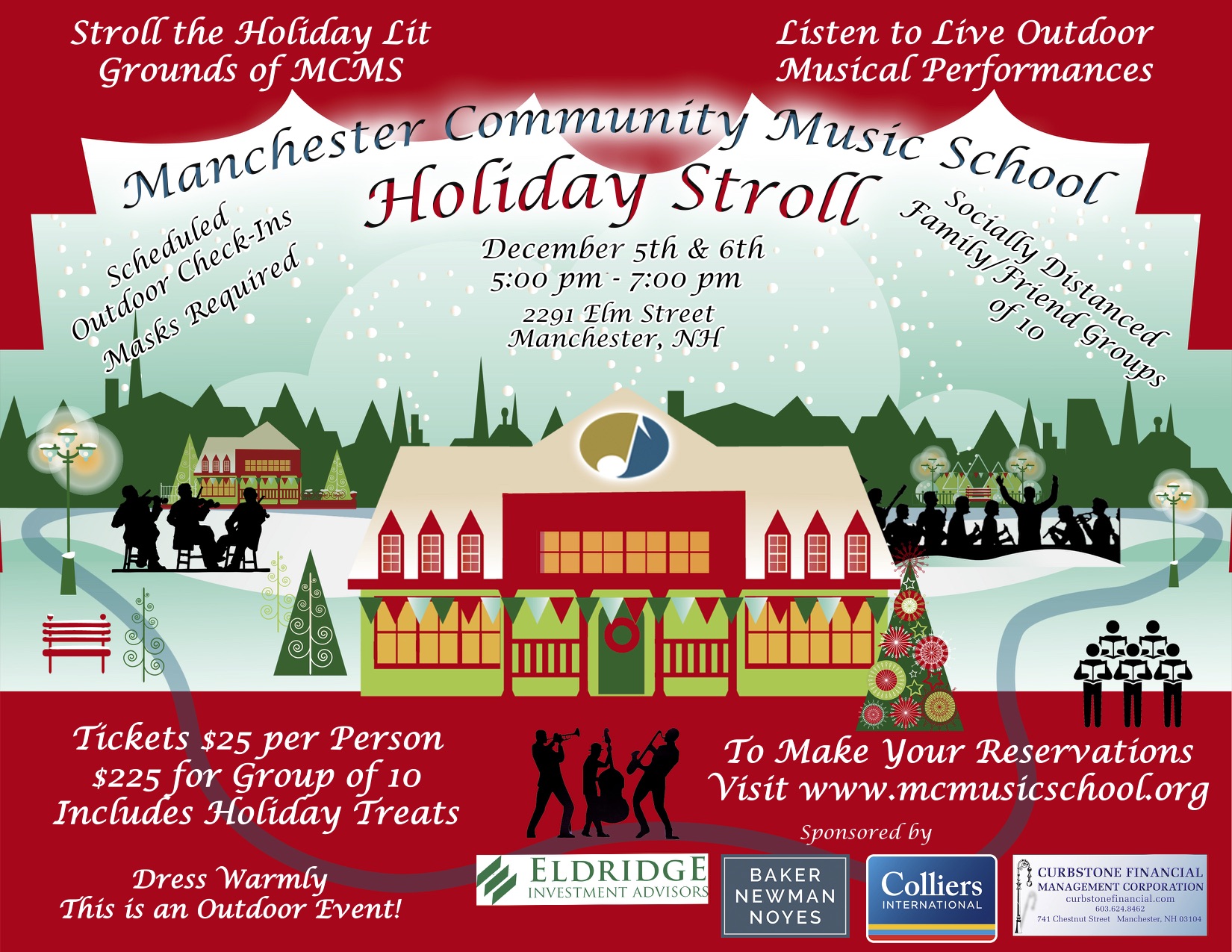 MANCHESTER, NH โ The Manchester Community Music School was determined to kick off the Holiday Season with live music in a safe way. So they turned their Annual Holiday Pops Concert into an outdoor, socially distant Holiday Stroll!