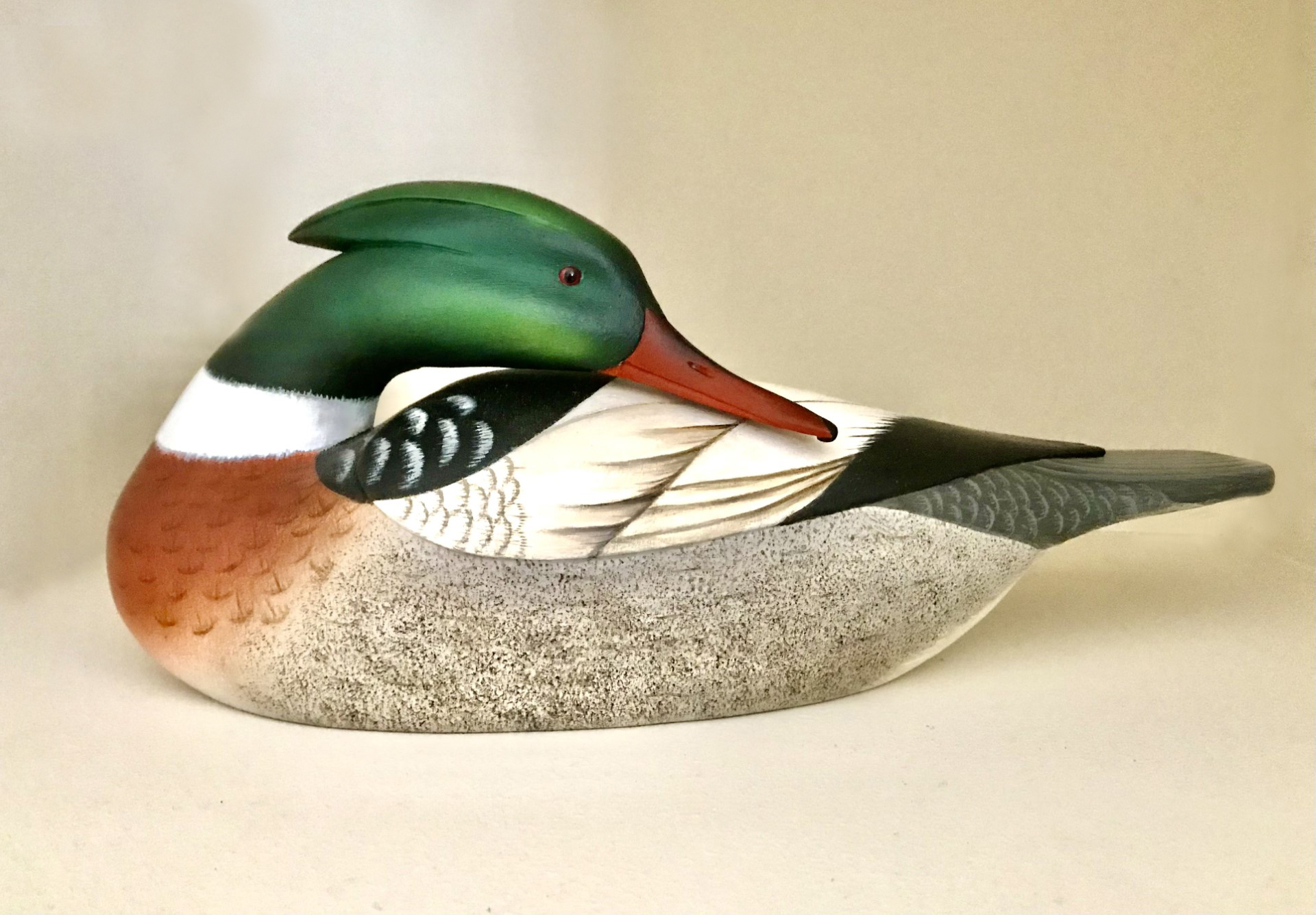 The exhibit will feature songbirds and waterfowl carved from basswood, cedar, or tupelo. Cleary, who has devoted most of her career to clay sculpture and abstract painting, says that she enjoys carrying on the traditional art form of bird carving. “Transforming a block of wood into a bird is a journey, and takes countless hours to carve and paint. With each bird, I gain a better understanding and appreciation for these wonderful feathered creatures,” she explains.