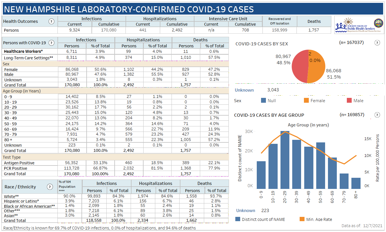 New Hampshire 2019 Novel Coronavirus (COVID-19) Summary Report (updated December 8, 2021, 9 a.m.)