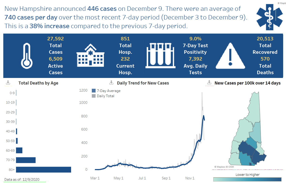 ย New Hampshire 2019 Novel Coronavirus (COVID-19) Summary Report (data updated December 9, 2020, 9 a.m.)