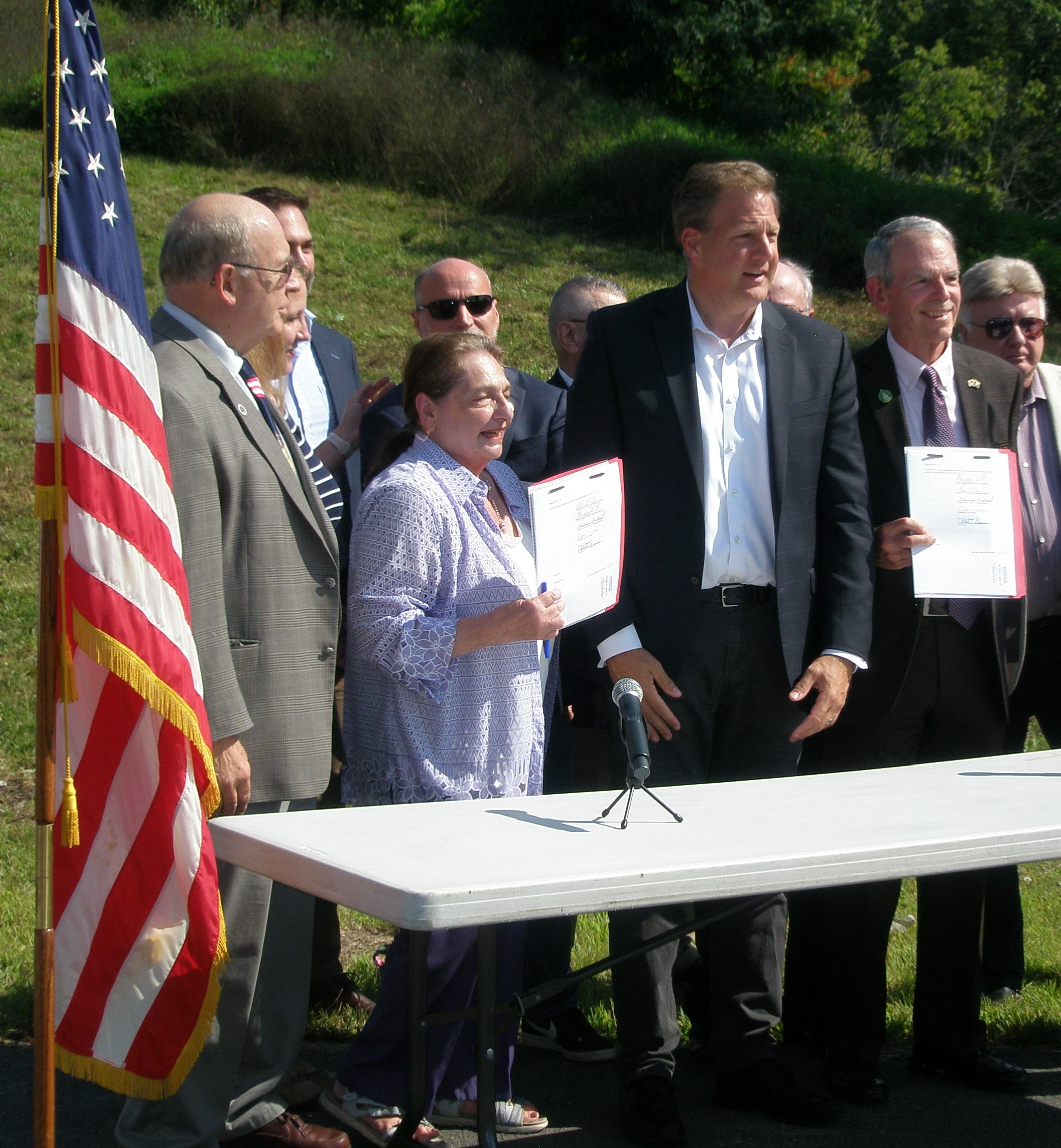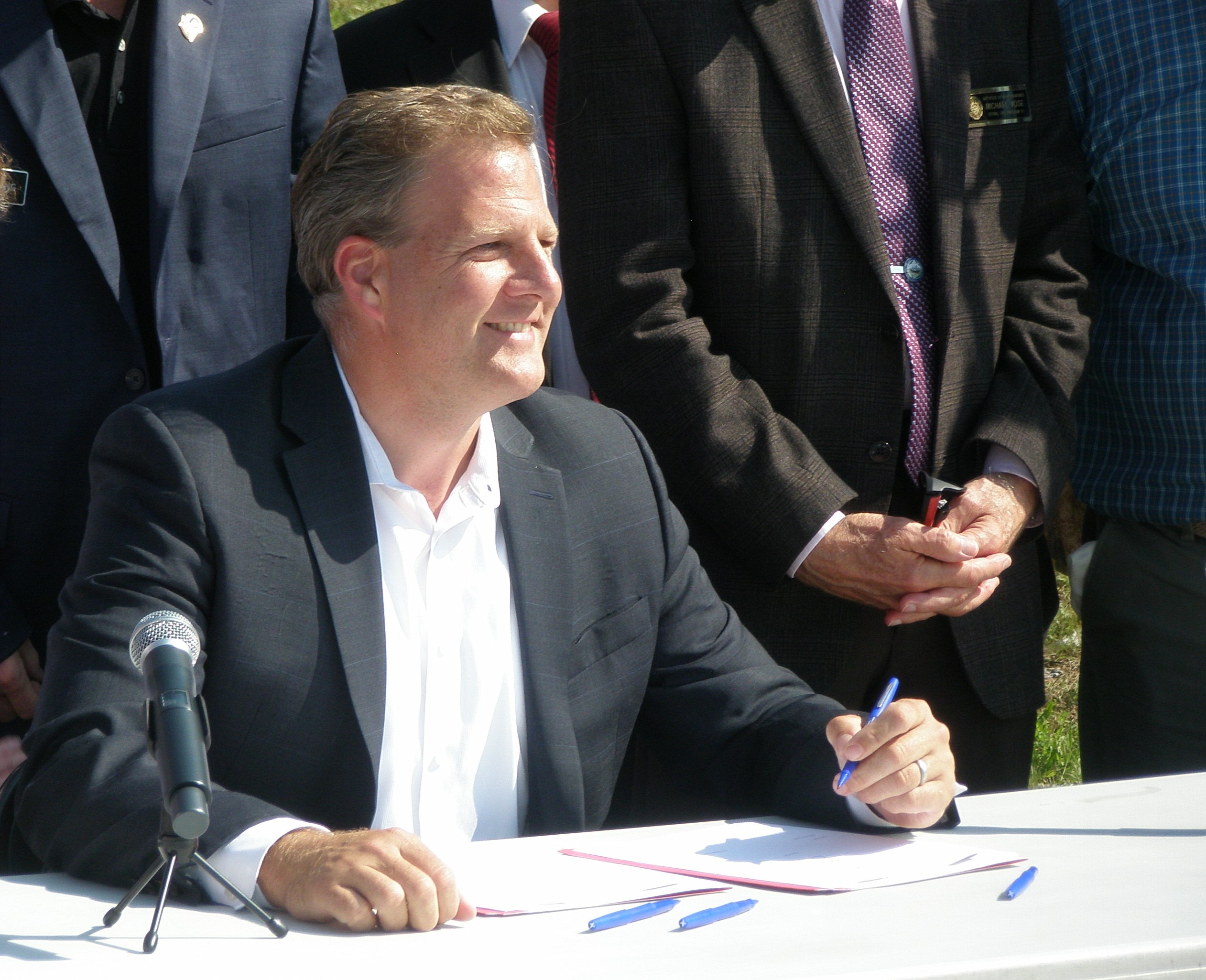 In recognition of how the bill would benefit Derry, Sununu signed it at the townโs existing solar array at the transfer station.