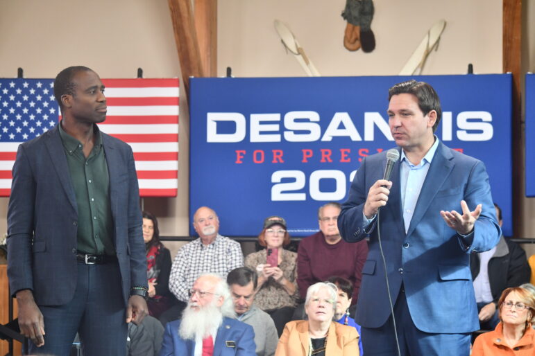 MANCHESTER, NH – Republican Presidential Candidate Ron DeSantis was joined by Florida Surgeon General Joseph Ladapo in a “medical freedom” event at McIntyre Ski Area on Wednesday.