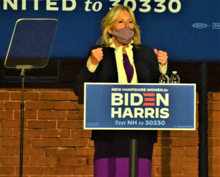 MANCHESTER, NH โ Dr. Jill Biden came to the Granite State on Friday with a message of the need for kindness, hope and perseverance in America, qualities she says are exemplified by her husband, Democratic Presidential Candidate Joe Biden.