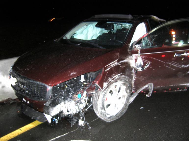 Approximately 30 feet away from Todisco, a Red 2019 Kia Sorrento SUV was located against the jersey barrier, facing southbound in the northbound lane. The vehicle sustained heavy damage to all sides to include full front and side curtain air bag deployment. The vehicle was determined to have been operated by Todisco.