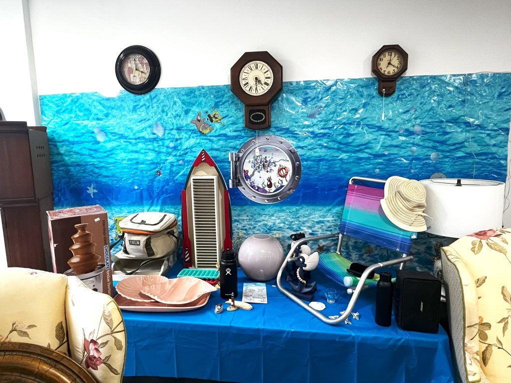 SpongeBob wall art that once brought joy to Robin Aviles’ son Jason is now a colorful backdrop for an array of beach-themed thrift items at her thrift shop, Jason’s Joy. Photo/Jules Robidoux
