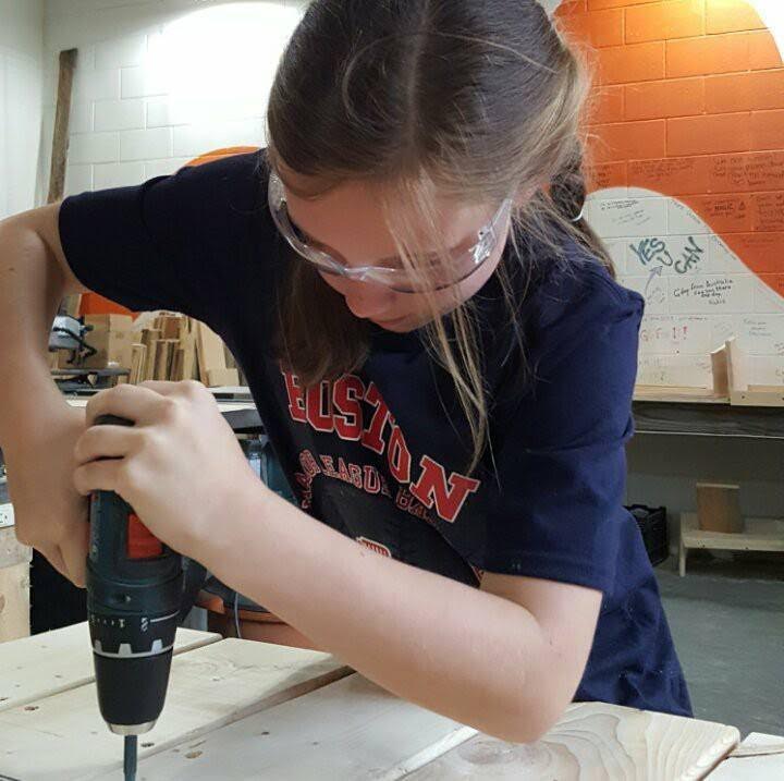 Today, Hamel utilizes most of the organization’s resources with girls ages 8-9, though there is also a leadership program for teenagers which is currently running a waitlist for middle schoolers. At the non-profit hub, there are also women’s classes offered. The stark difference, Hamel finds, in working with the varying age groups of women and girls, is that in laying the groundwork early, young girls haven’t experienced a lifetime of messaging that tells them they “can’t” or that this type of work is simply not in their arena. Girls at Work is a viable tool to open their eyes to their own potential.