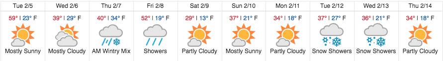 Below is a clickable snapshot of the 10-day weather forecast, from the Weather Underground.