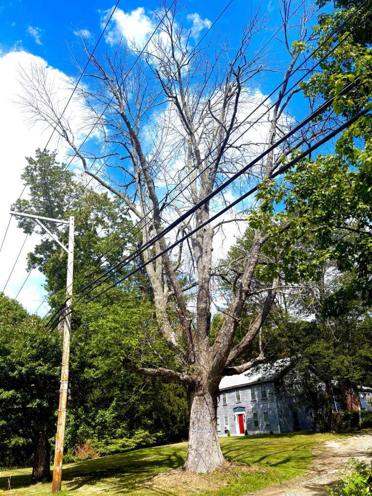 A dying, hazardous Ash tree scheduled to be removed along Mammoth Road in Londonderry. Photo/Eversource