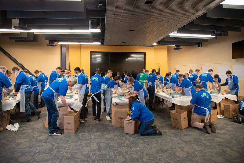 More than 130 Eversource employees took part in the day-long community service event at Eversource Energy Park featuring an annual โMac Offโ competition, during which teams competed to see how many mac and cheese meals they could pack in an hour. In addition to packing thousands of mac and cheese meals, Eversource donated $17,000 to the New Hampshire Food Bank, a program of Catholic Charities New Hampshire.