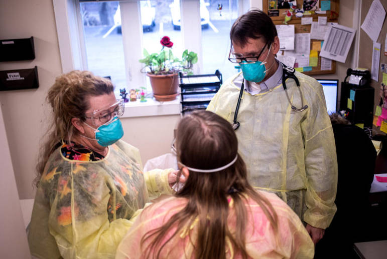 Dr. Peter Loeser said his staff is taking the temperature of every patient at the door before allowing them inside. Routine tests for things like strep throat that require throat swabs are being performed in the parking lot.