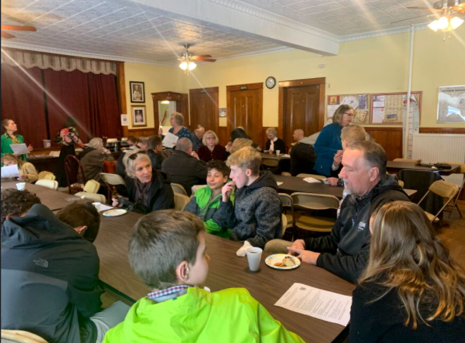 On this Sunday, March 6, they gathered after the service holding little Ukrainian flags and talking about the war. They asked each other about family members they still have there. Many are upset with the unprovoked invasion and blame Putin for the crisis.