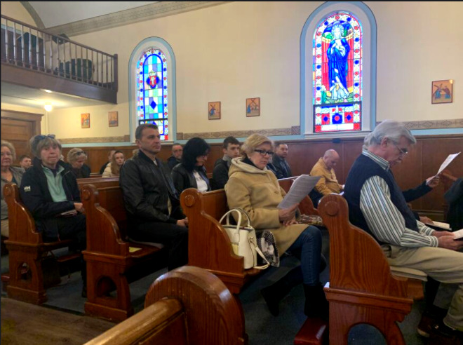 Each Sunday, the 50 children and adults who make up this parish fill up the benches to hear the Mass in Ukrainian. They sing, receive communion, and have coffee and pastries after, but since the war started, they stayed longer to pray the rosary for peace in their country.