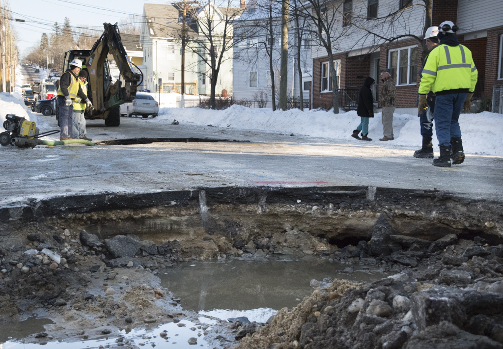 Manchester Water Works and crews from the Department of Public Works are at the scene and will be working “around the clock” until it is repaired.