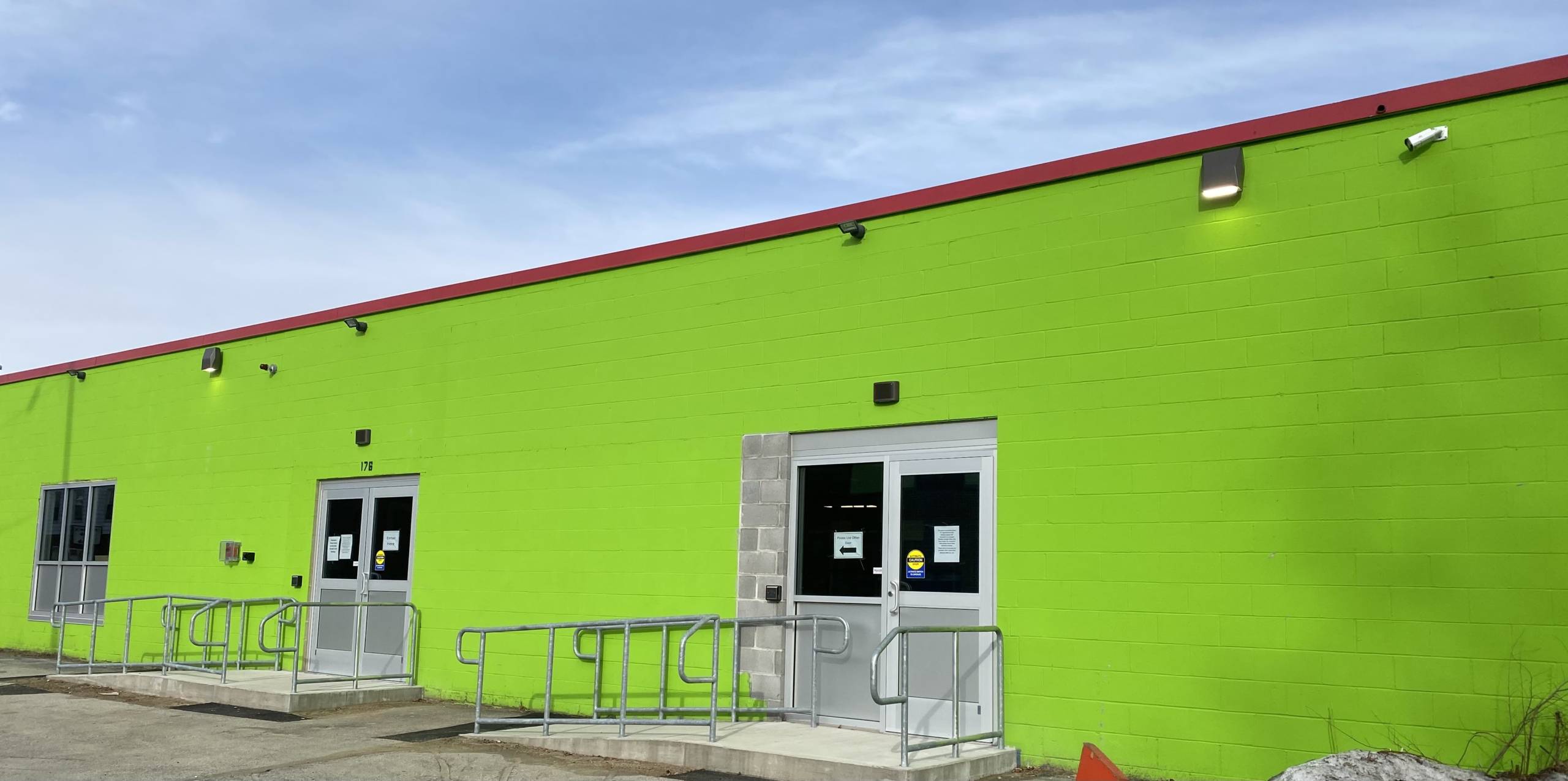 The food pantry is located inside the lime-green building, at 176 Lake Ave., where car batteries were previously sold.