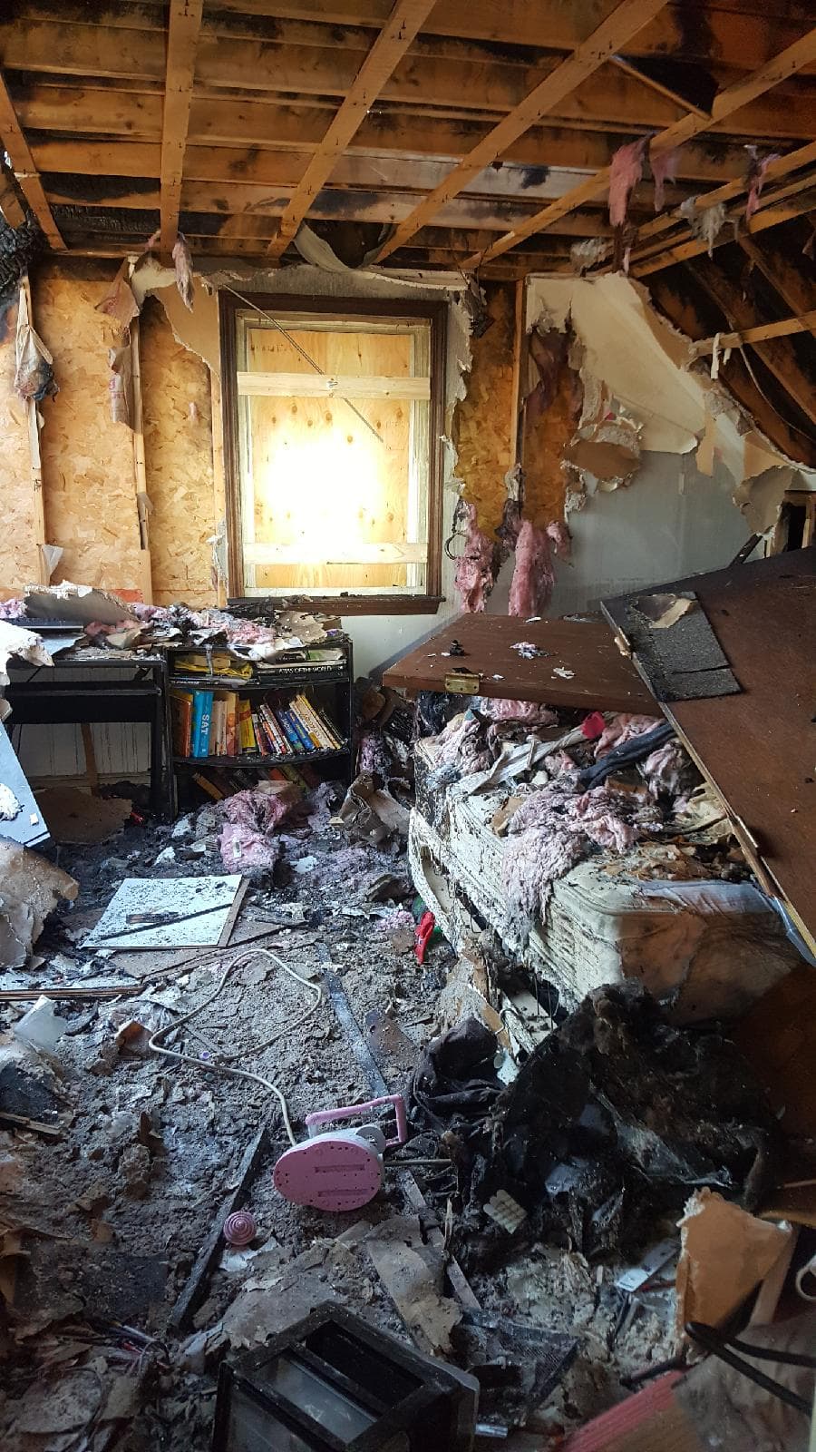 “The final determination was thatย  a spark came out the back vent of the pellet stove, which landed on leaves that had blown up against the house during all that wind we had. The leaves caught the deck on fire and it went up the side of house and into Jared’s bedroom first,” Simard says.