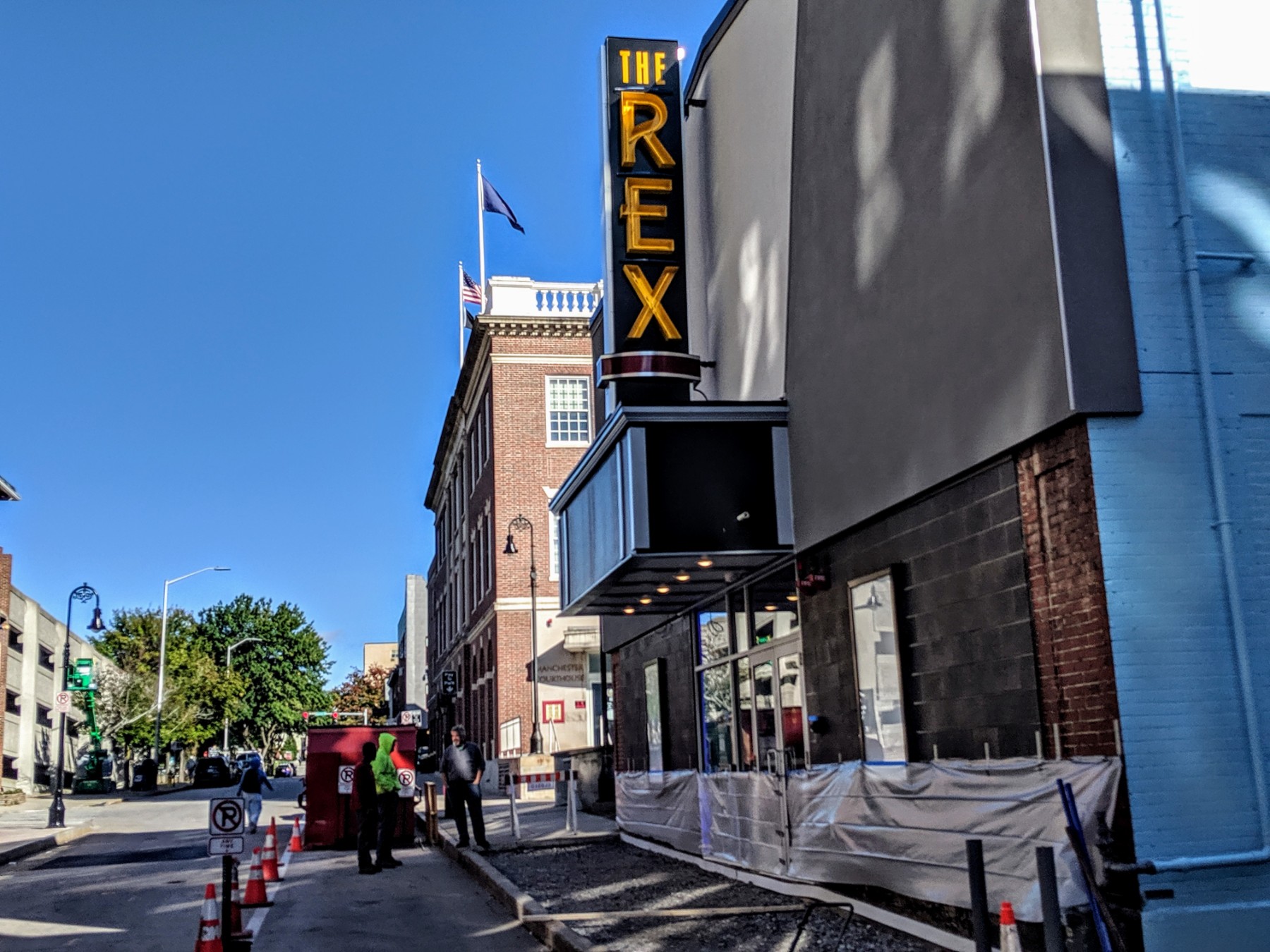 Work crew outside The Rex on Oct. 4. Photo/Carol Robidoux