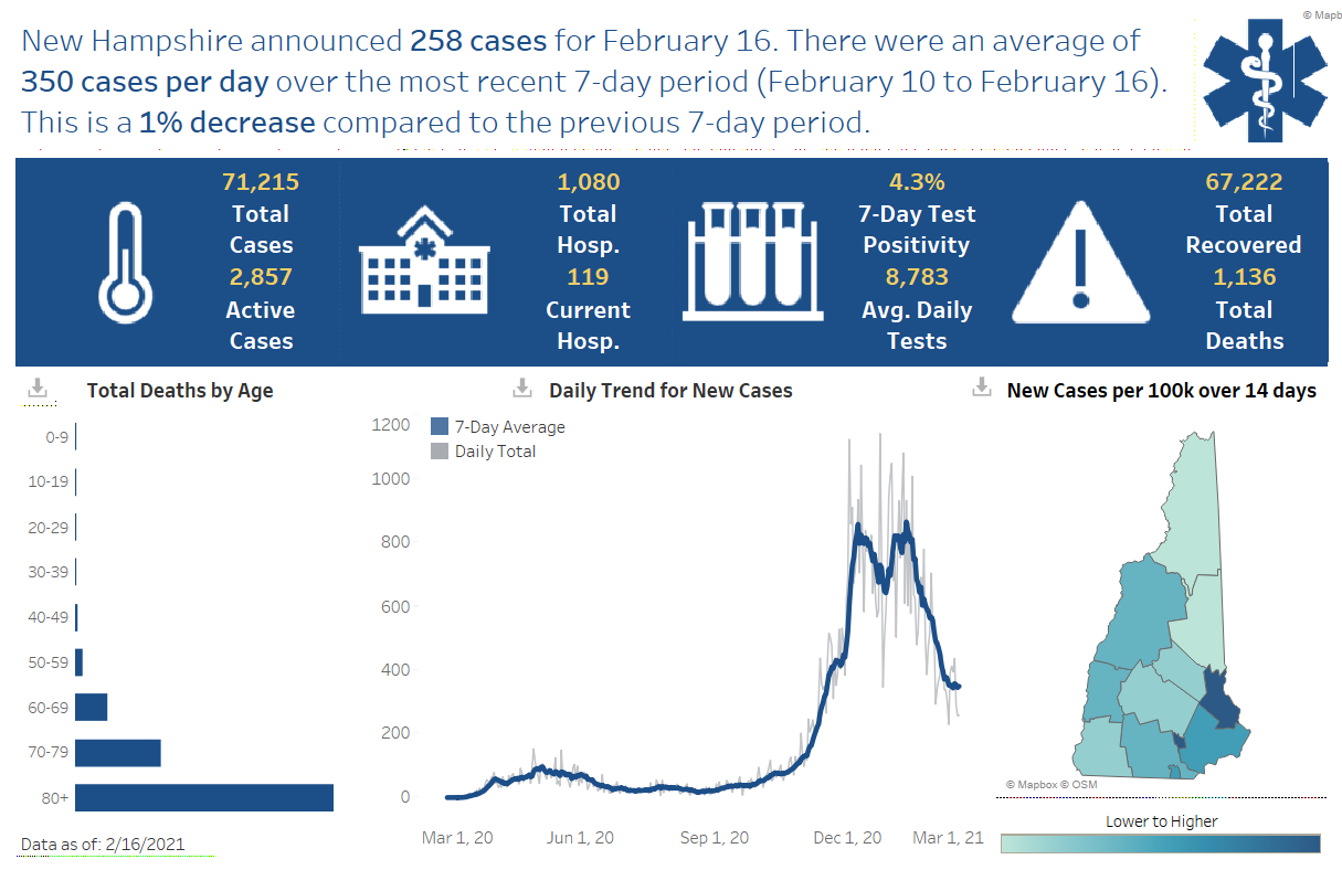 ย New Hampshire 2019 Novel Coronavirus (COVID-19) Summary Report (updated February 16, 2021, 9 a.m.)