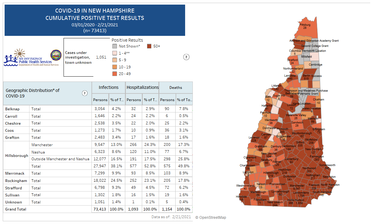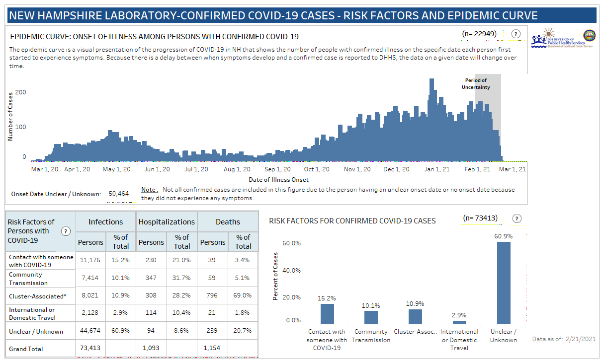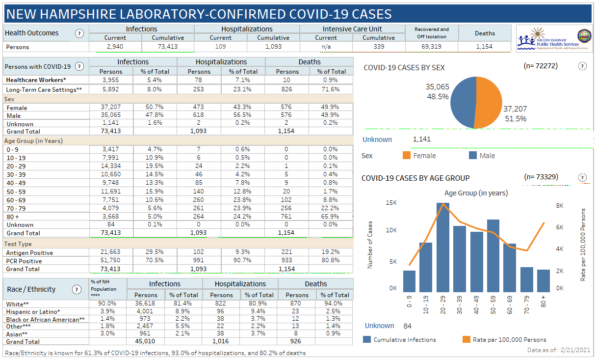 New Hampshire 2019 Novel Coronavirus (COVID-19) Summary Report (updated February 21, 2021, 9 a.m.)