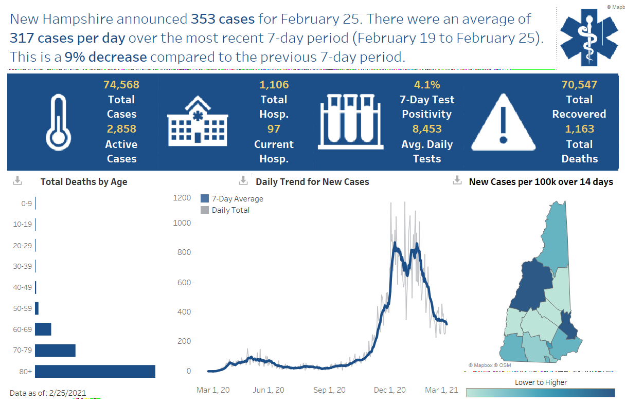 New Hampshire 2019 Novel Coronavirus (COVID-19) Summary Report (updated February 25, 2021, 9 a.m.)