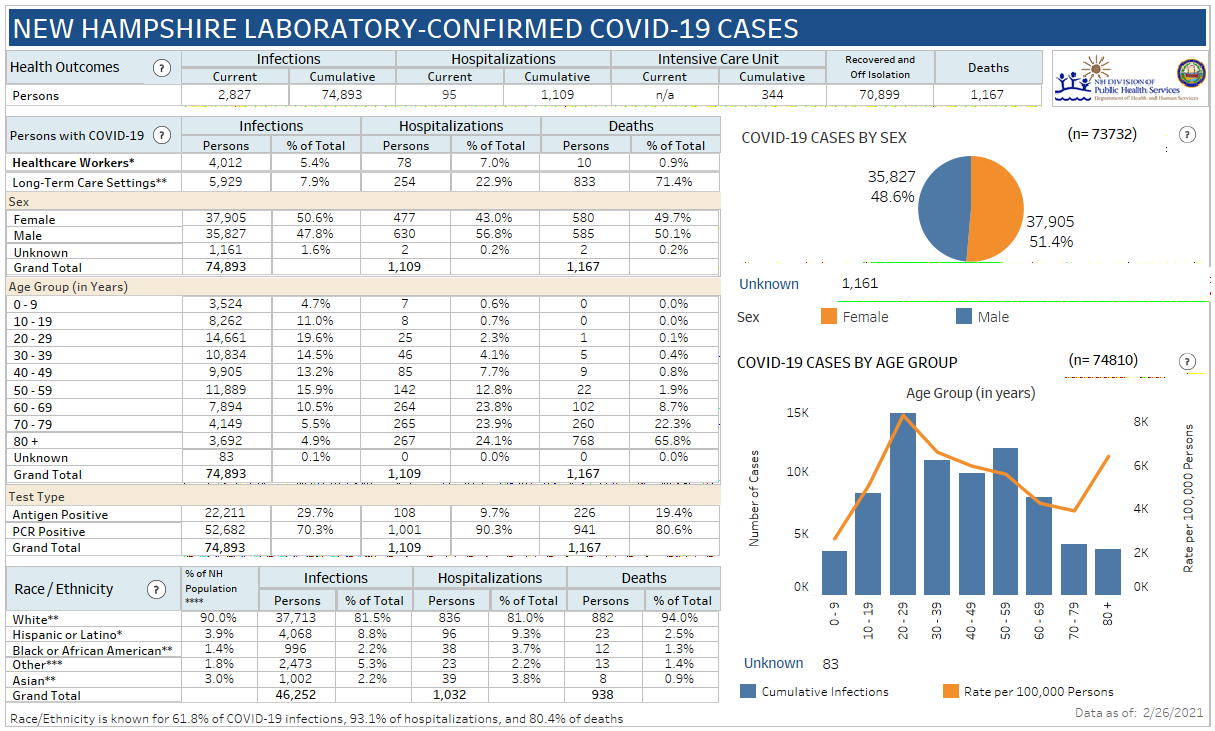 New Hampshire 2019 Novel Coronavirus (COVID-19) Summary Report (updated February 26, 2021, 9 a.m.)