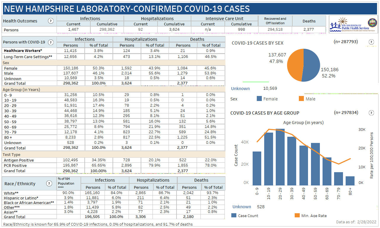 New Hampshire 2019 Novel Coronavirus (COVID-19) Summary Report (updated February 28, 2022, 9 a.m.)