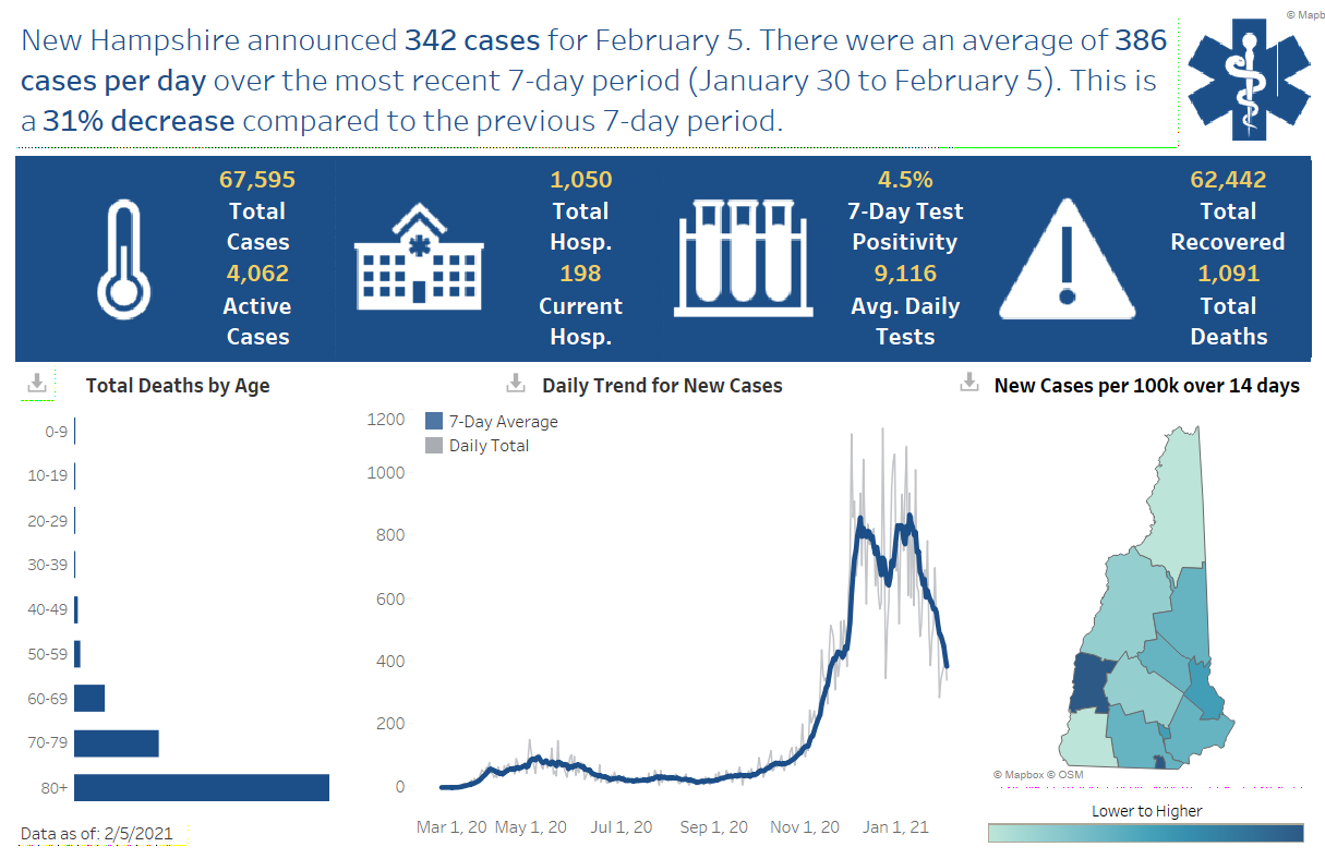 ย New Hampshire 2019 Novel Coronavirus (COVID-19) Summary Report (updated February 5, 2021, 9 a.m.)