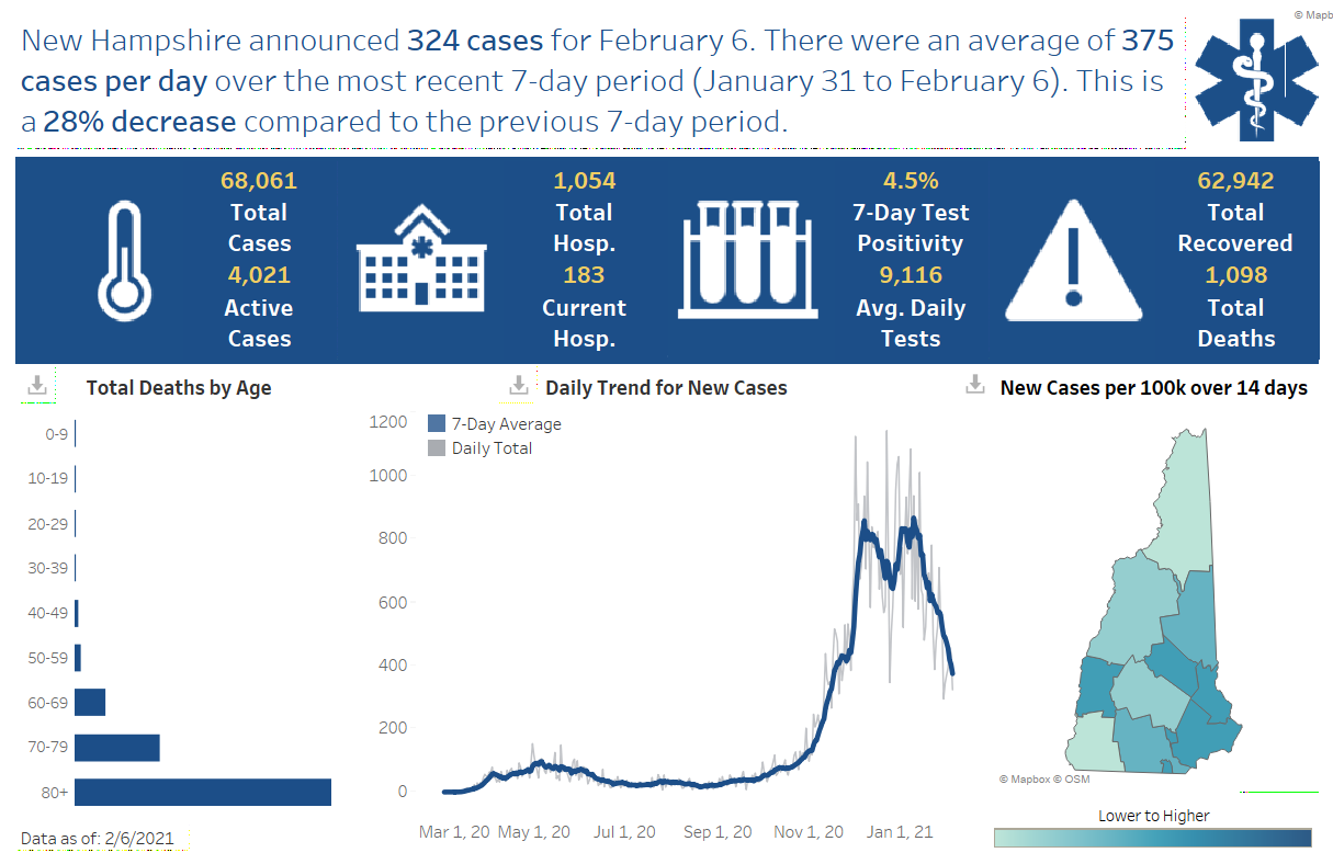 ย New Hampshire 2019 Novel Coronavirus (COVID-19) Summary Report (updated February 6, 2021, 9 a.m.)