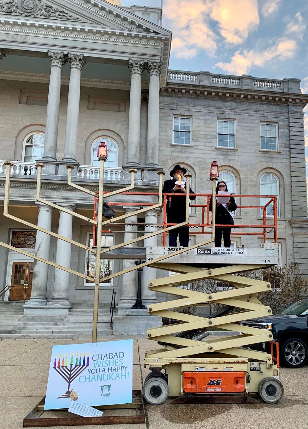 Nov. 28: Chabad Center for Jewish Living NH assembled at the NH State House for the traditional lighting of the state’s largest menorah. The outdoor ceremony included sufganiot (Israeli donuts), dreidel holographic glasses, hot chocolate and goodies from PJ Library – New Hampshire in Bedford.