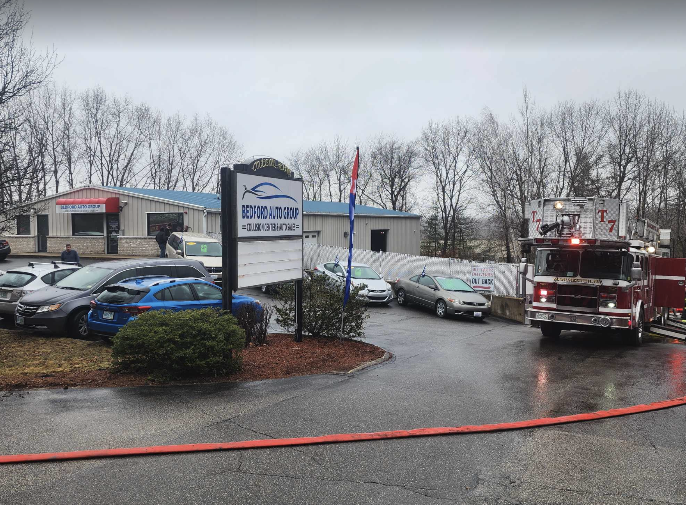 Firefighters quickly extinguished a fire at the Bedford Auto Group on South Willow Street on March 15, 2024. Photo/Jeffrey Hastings