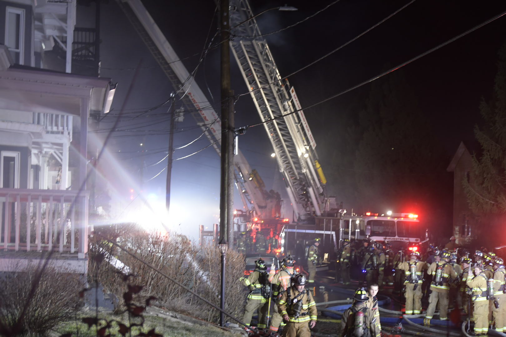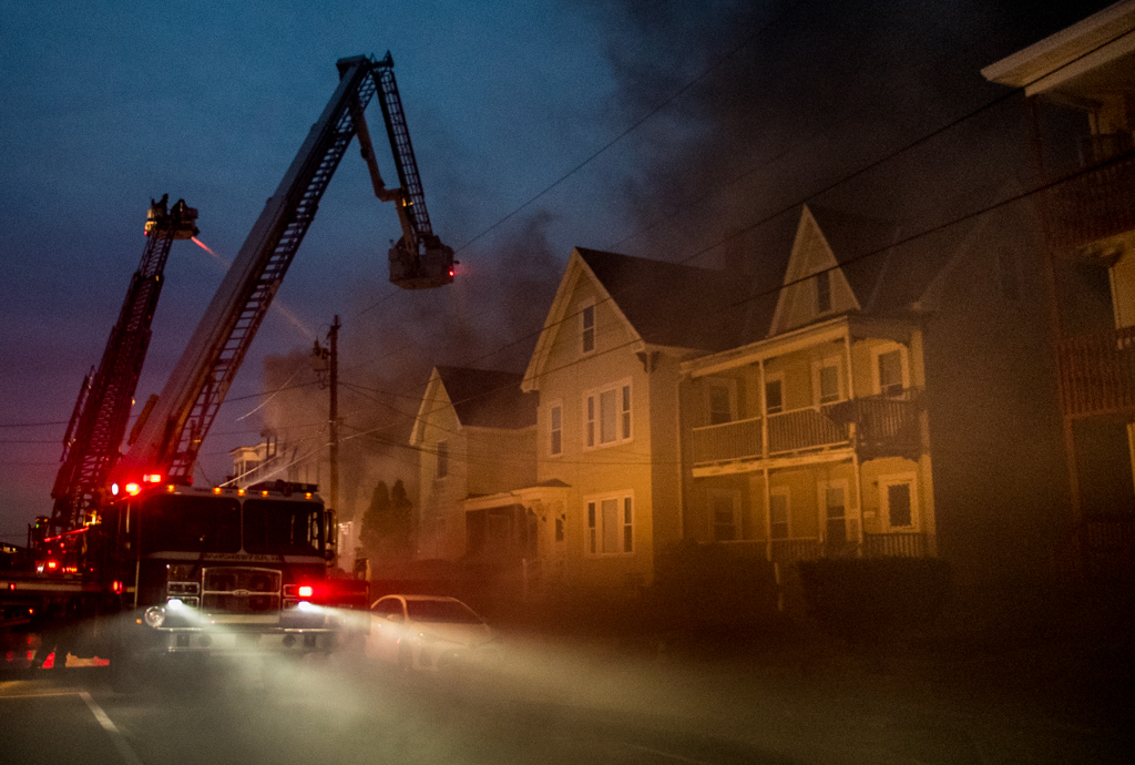 Crews were dispatched to 474 Spruce St. just after 6 p.m. with a second alarm struck at 6:07 p.m. and a third alarm at 6:52 p.m. Upon arrival companies encountered heavy fire conditions on the second- and third-floor porches extending into the apartments of a three-story six-family occupied tenement building.