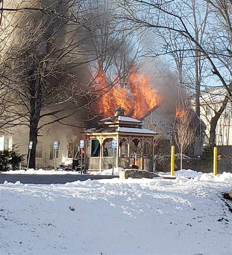 District Fire Chief Hank Martineau said Engine 10 arrived first to heavy fire coming from the back half of the two-story structure, with attached barn. After determining that the building was vacant due to the size of the fire, the decision was made to go into defensive operation, Martineau said.