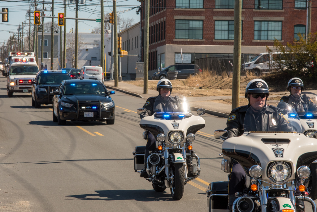 Having met many members of law enforcement over the years a special escort was coordinated by law enforcement from across the state. Cruisers, EMS, and fire aparatusย lined up outside the Elliot Hospital where Peter was loaded into an AMR ambulance and the next leg of his journey began. With lights flashing and sirens wailing, the convoy proceeded through Manchester and into Bedford.