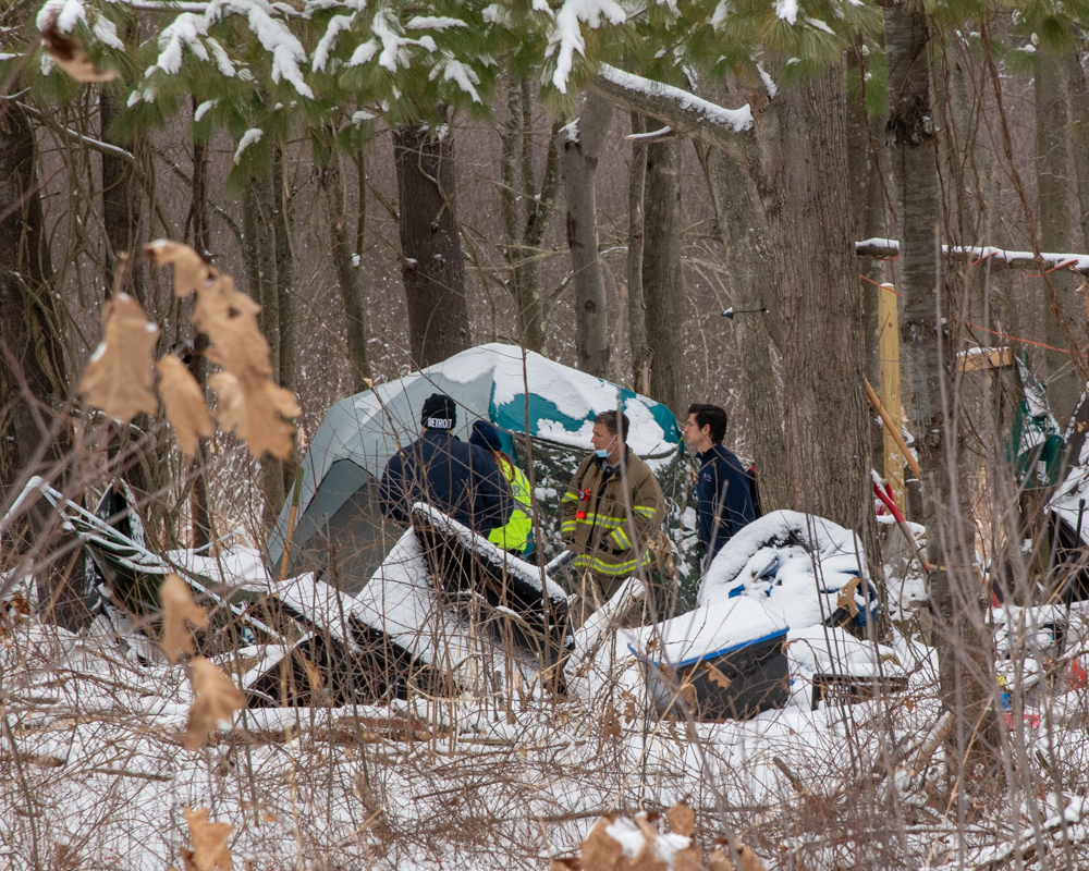 Manchester Fire Captain Peter Franggos said that it is one of many encampments the Manchester Fire outreach team visits on a frequent basis. The outreach services allow firefighters to document the location of encampments and provide requested items, such as hand warmers, gloves, and hats.