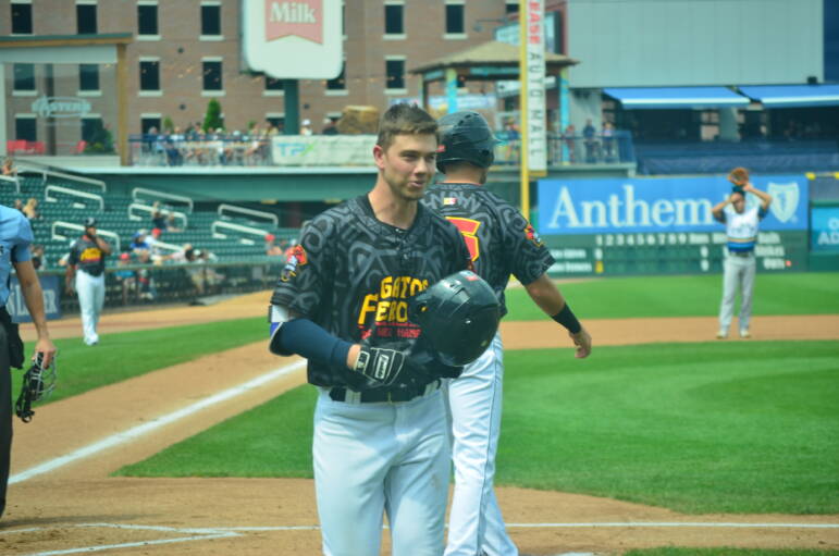 The other two first-inning runs for the Fisher Cats came off L.J. Talleyโs first-pitch homer, bringing Jordan Groshans across the plate.
