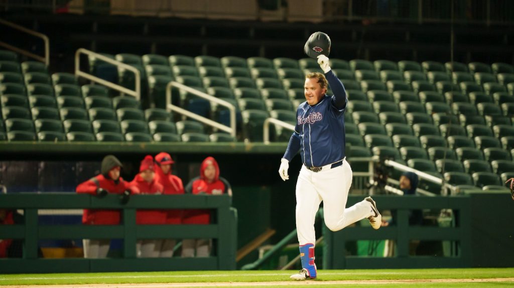 MANCHESTER, NH – Thanks to a pinch-hit home run from infielder Peyton “Iowa Meat Truck” Williams (TOR No. 28), the New Hampshire Fisher Cats (4-4) defeated the Harrisburg Senators (5-6) at Delta Dental Stadium on Wednesday night, 10-9. Williams’ Wednesday homer was the first pinch-hit walk off blast in Fisher Cats franchise history.