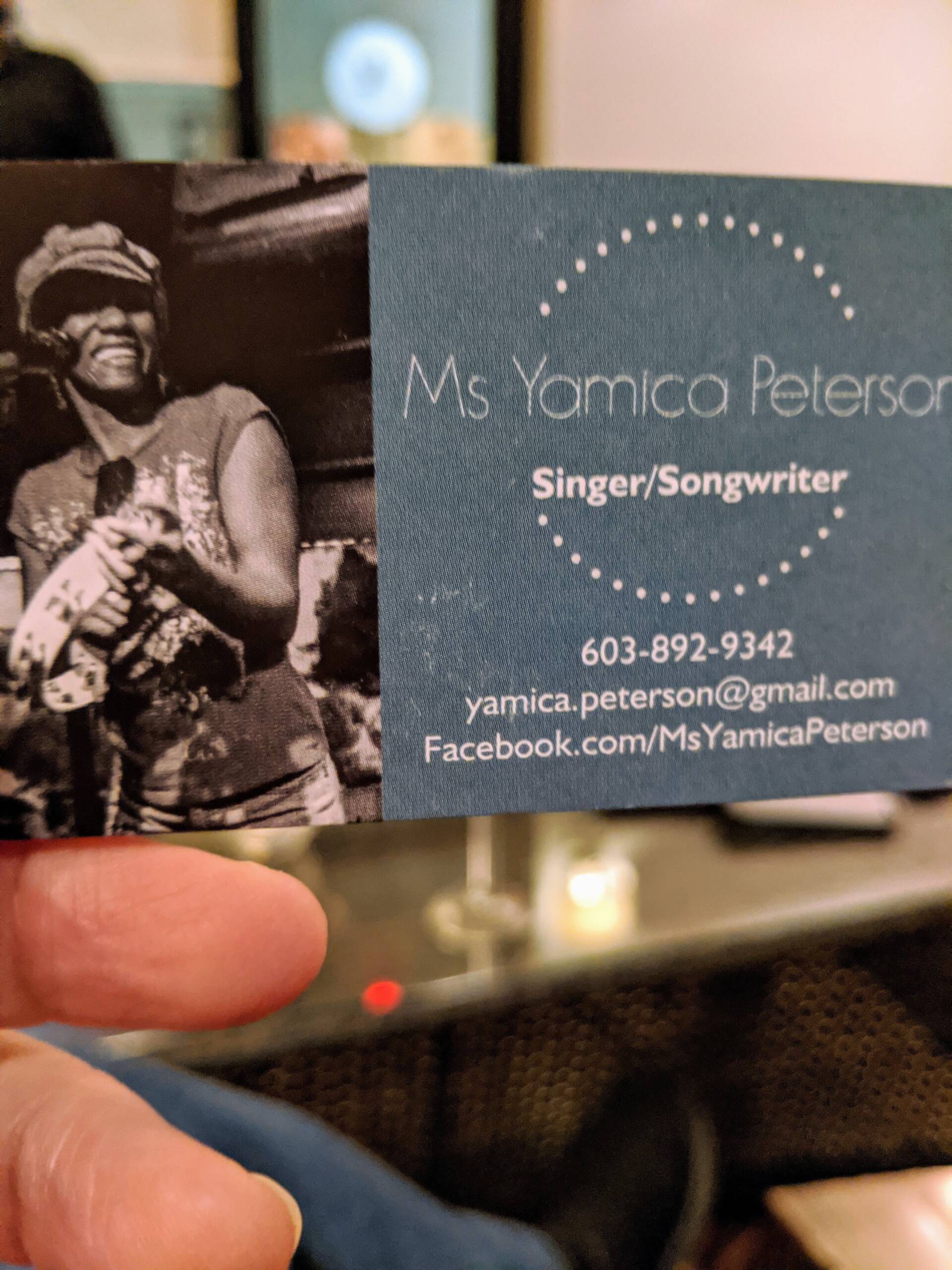 Yamica Peterson is hauling west to Manchester from her home on the Seacoast with her sound-guy/roadie/husband/love-of-her-life/muse Doug Cain for a Saturday night gig at the XO Bistro.