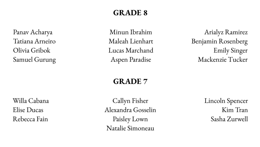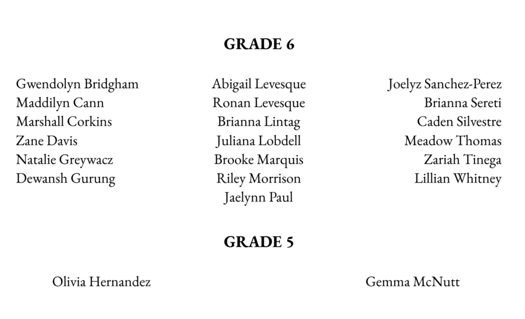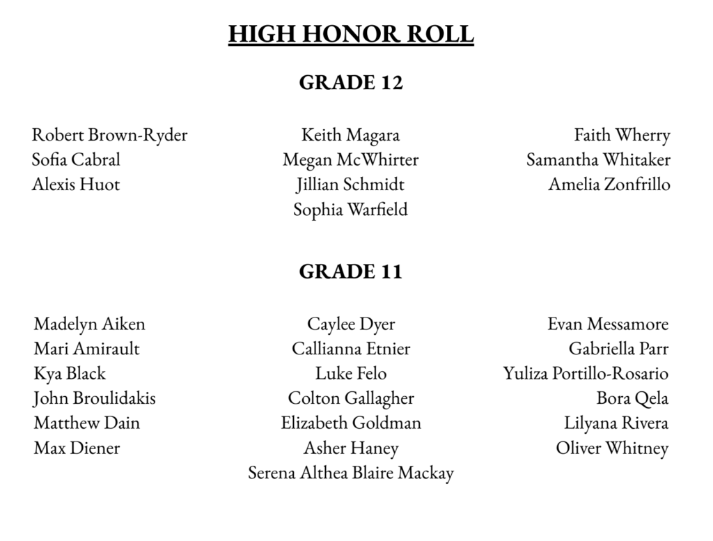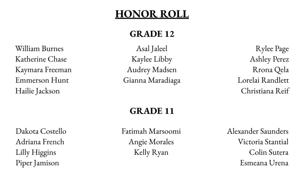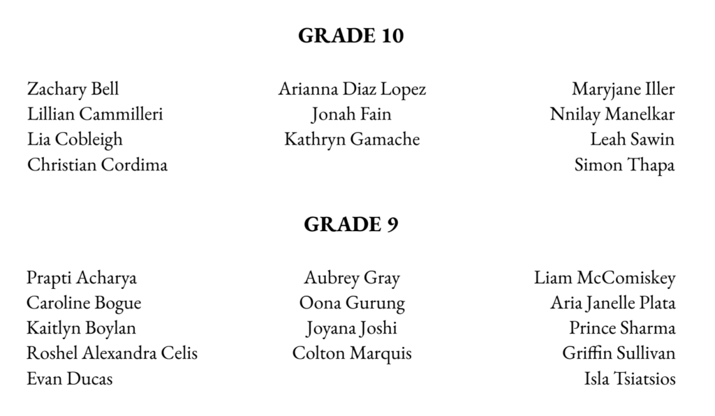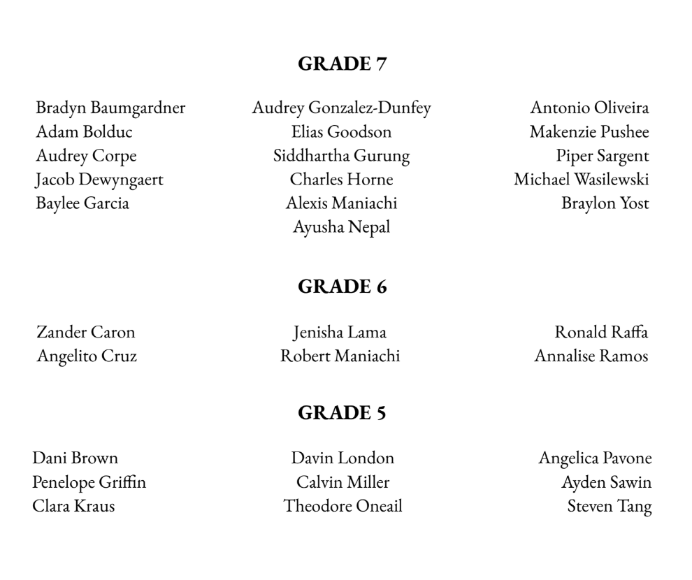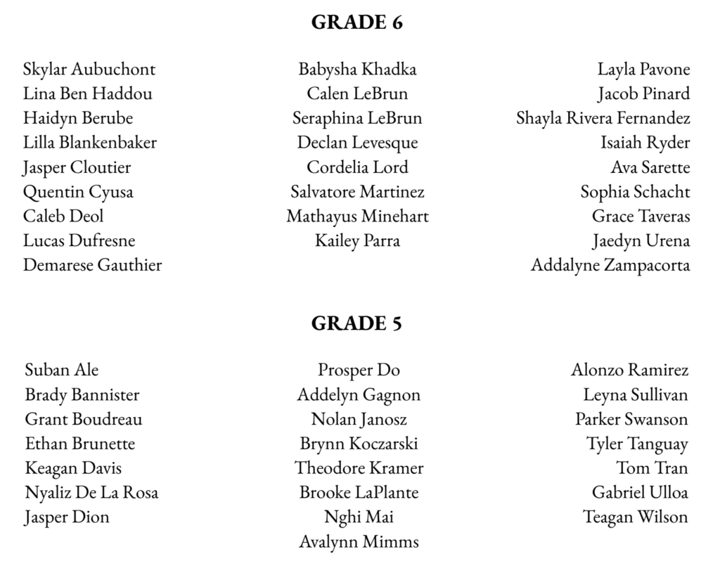 MANCHESTER, NH – The Founders Academy Public Charter School’s Dean of School, Cassie Hayes, announces recipients of the 2nd Quarter Honor Roll for the 2025-2026 academic year.