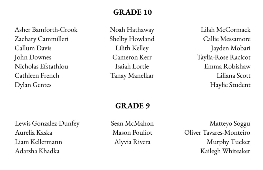 Congratulations to the students who worked so diligently to earn these distinctions!